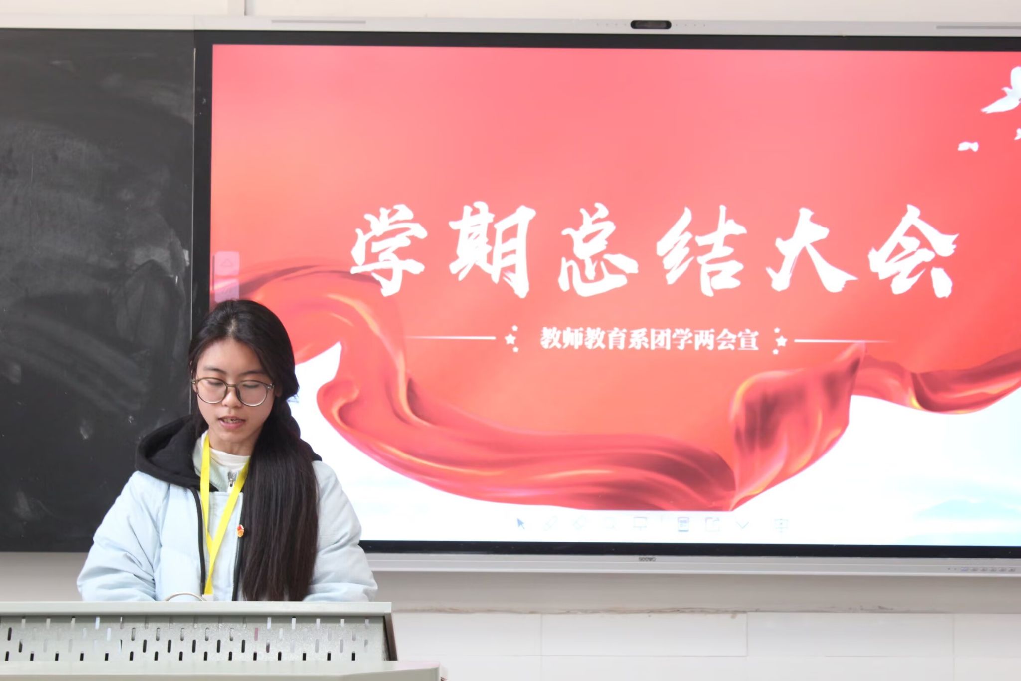 教师教育系团学两会委员团成员依次作本学期工作总结及学期感悟。