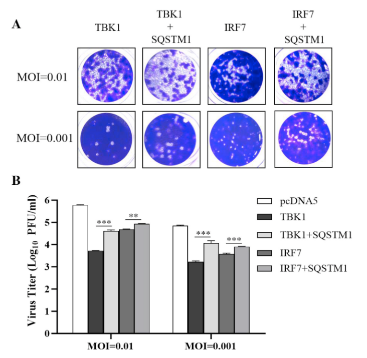 图1 SQSTM1抑制TBK1和IRF7所介导的抗病毒活性