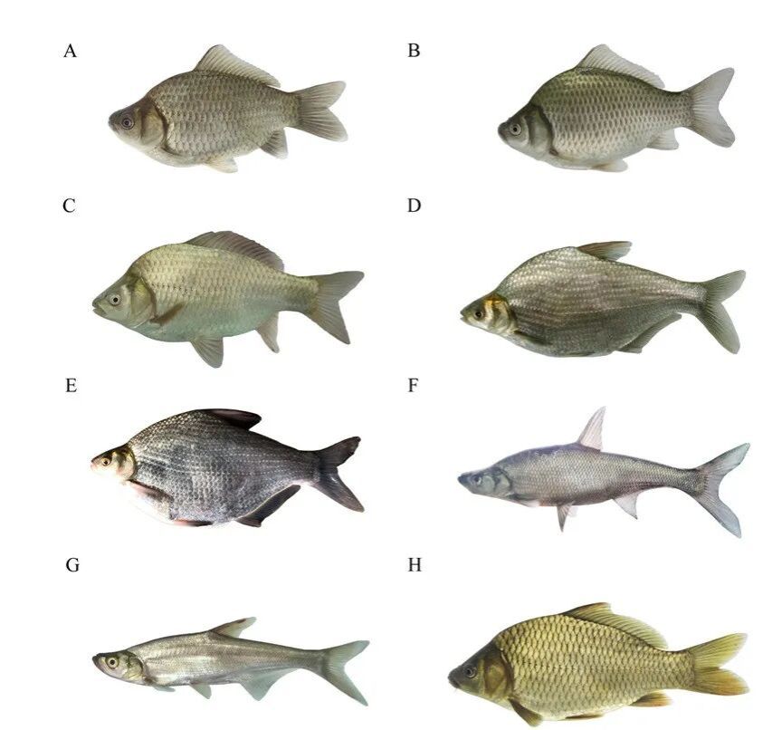 2. 大杂交育种途径培育的代表性鱼类:(A)合方鲫 (B)合方鲫2 (C)合方鲫3 (D)合方鳊 (E)合方鳊2 (F)湘军鲌 (G)湘军鲌2 (H)异源三倍体鲤