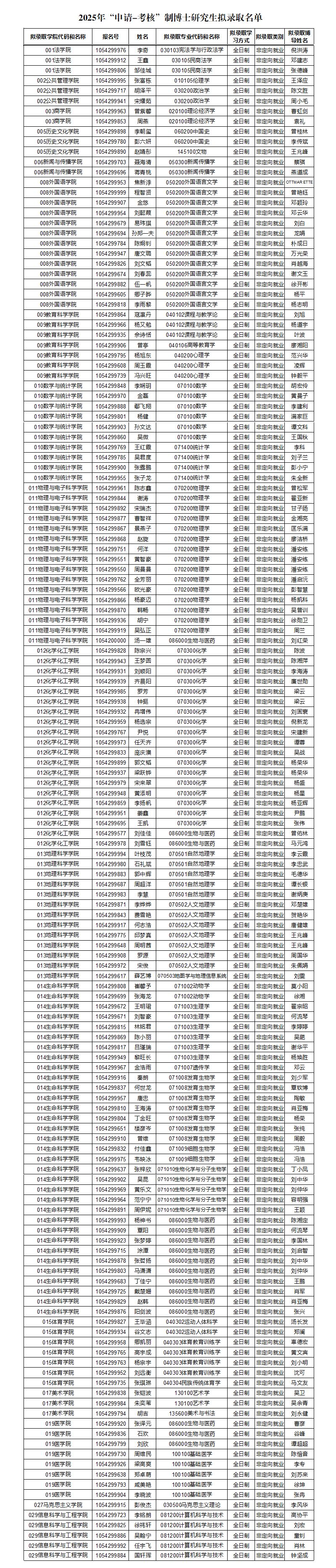 2025年“申请-考核”制博士研究生拟录取名单公示