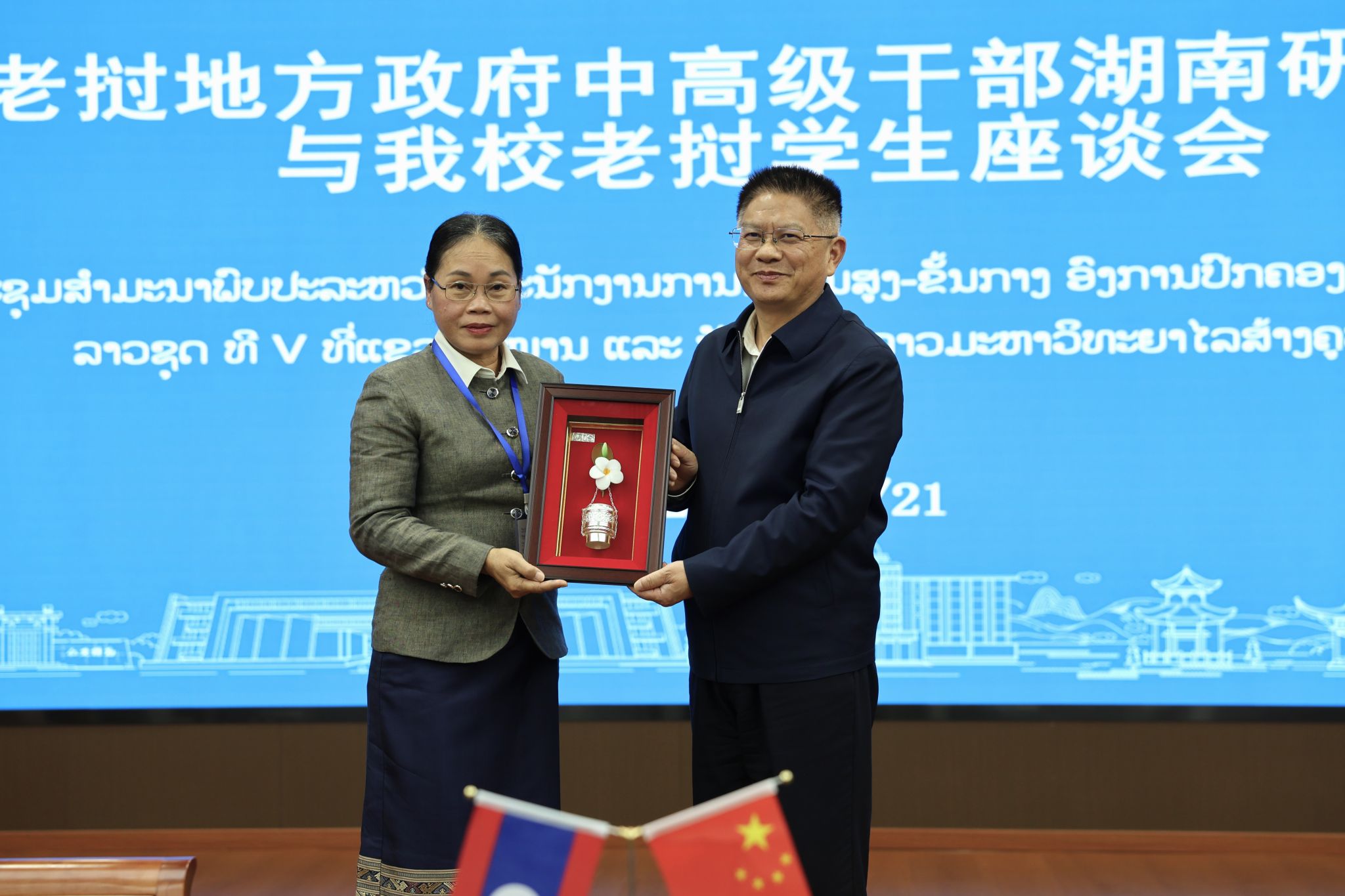 (记者 刘慧欣)10月21日,老挝地方政府中高级干部湖南研修班一行访问我校,副校长唐贤清出席座谈会,会议由国际交流合作处副处长周柯主持。
