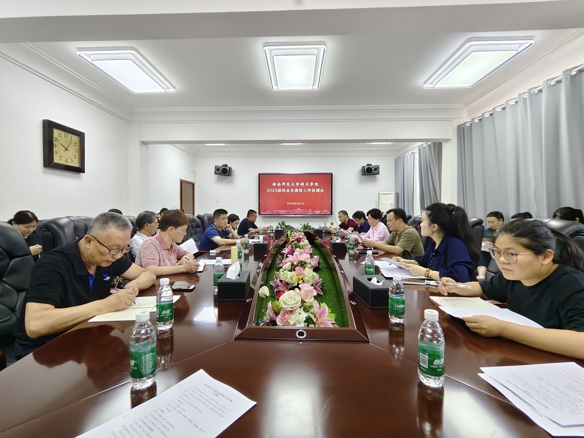 赵鑫海就做好毕业生离校工作提出了三点要求,一是要确保毕业生离校期间的校园安全稳定,做好应急预案,严守安全底线;二是各部门要高度重视、加强沟通、通力配合,为学生提供便捷服务;三是要注重对毕业生的人文关怀,关注学生需求,营造暖心和谐的毕业氛围。