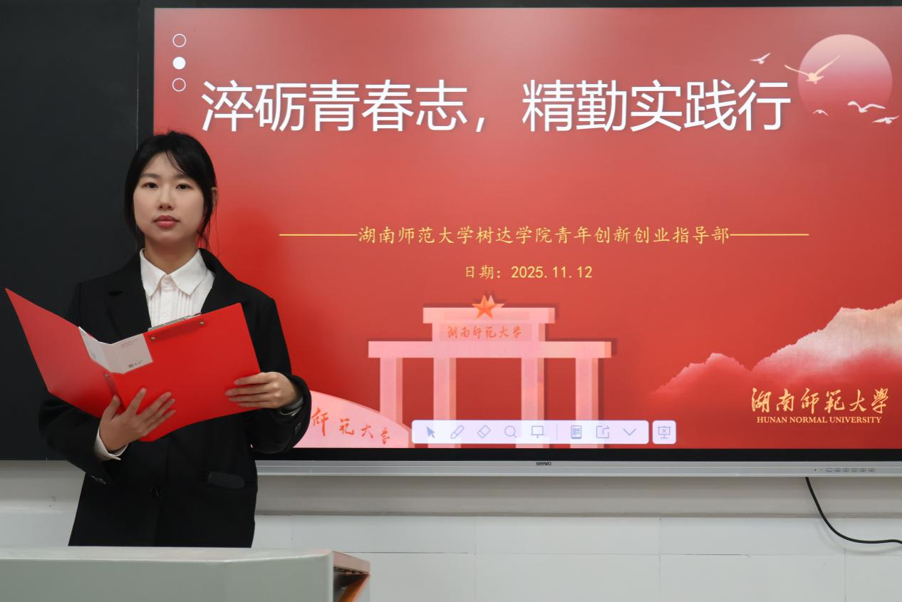 (通讯员 陈锦红 雷丽华)11月12日中午,我院团委青年创新创业指导部在达美楼101阶梯教室开展以“淬砺青春志,精勤实践行”为主题的精勤讲堂活动。院团委副书记龙珊出席活动。2023级汉语言文学专业周李羽檬担任主讲人。
