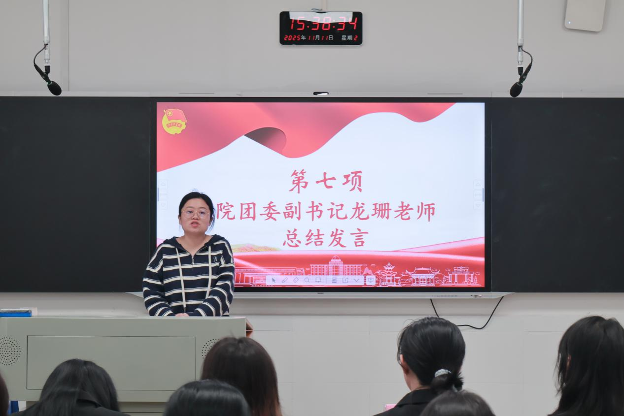 龙珊作总结发言。她希望,同学们以此次讲堂为契机,将理论学习与实践锻炼紧密结合,在知行合一中锤炼过硬本领。她鼓励大家勇担时代使命,把个人理想融入国家和民族事业中,用青春和汗水为实现中华民族伟大复兴贡献智慧和力量。