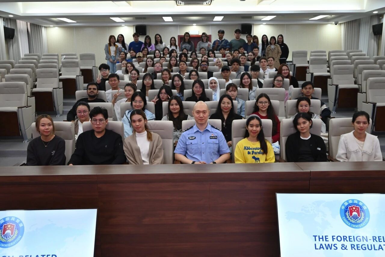 为帮助国际新生更快适应在中国的生活,活动特别邀请了长沙市公安局出入境管理支队刘成亮警官带来“开学第一课”。从涉外管理规定、宗教政策法规,到如何防范电信诈骗,刘警官用通俗易懂的语言进行了细致讲解,为国际新生的在华生活筑牢 “安全防线”。现场新生们认真聆听、不时记录,纷纷表示 “干货满满,让人很安心”。