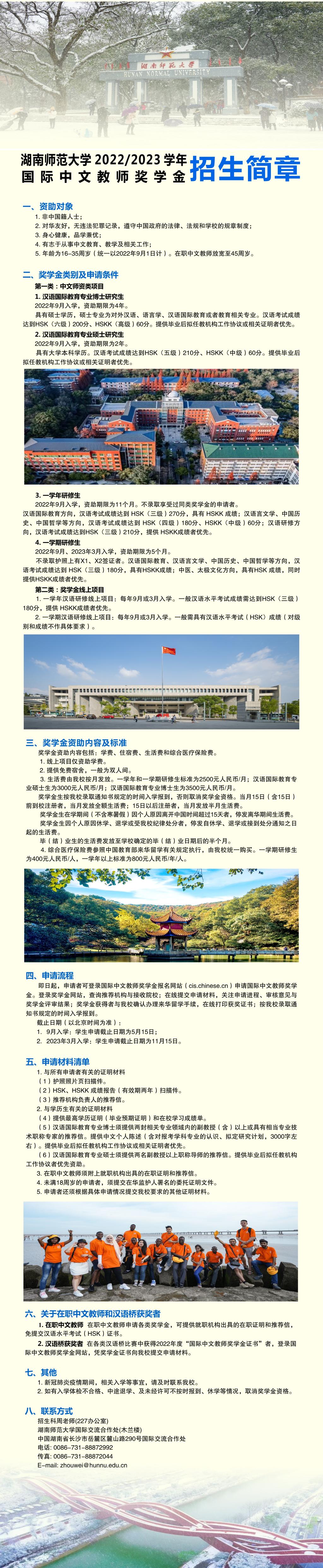 湖南师范大学2022-2023学年国际中文教师奖学金招生简章(4月21日更新)