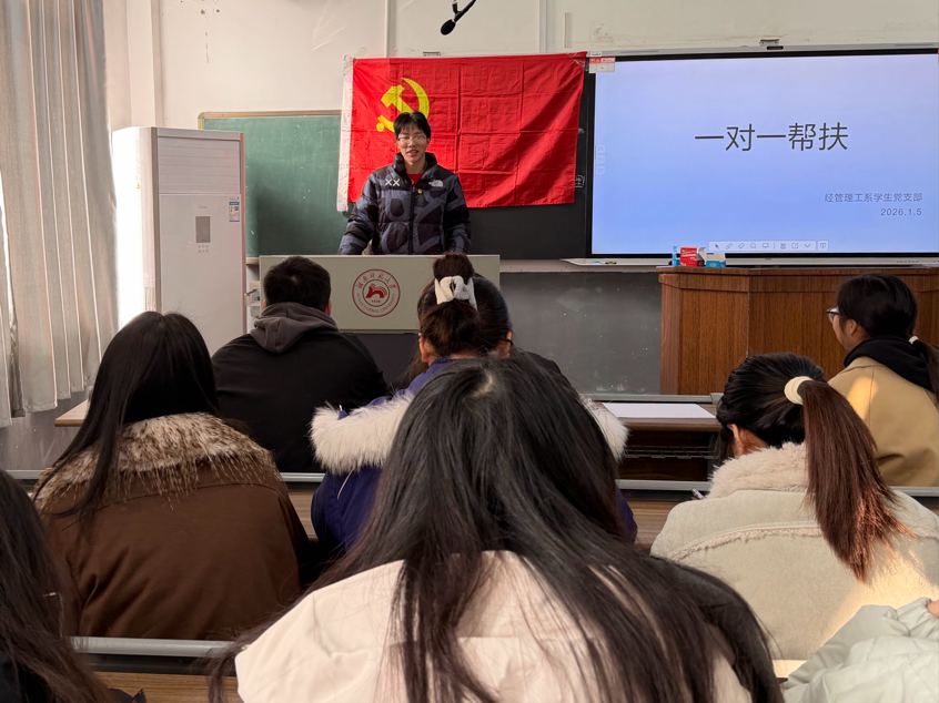 (通讯员 史沁灵 吴雨霏 杨阳)1月5日上午,我院经管理工系学生党支部在树达楼208开展一对一帮扶活动。活动由经管理工系学生党支部副书记刘开主持。