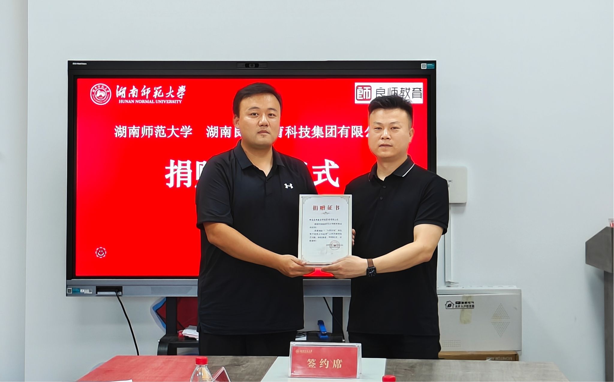 (通讯员 邓郭欢)6月26日下午,湖南良师教育科技集团有限公司捐赠签约仪式在我校励德楼团委会议室举行。捐赠仪式由我校团委副书记胡滢主持。