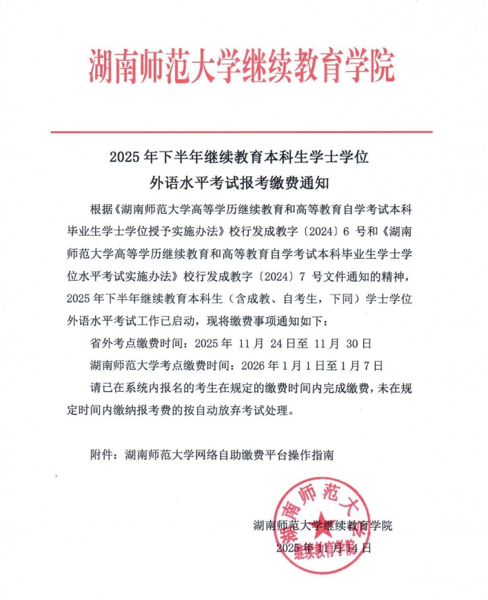 2025年下半年继续教育本科生学士学位外语水平考试缴费通知