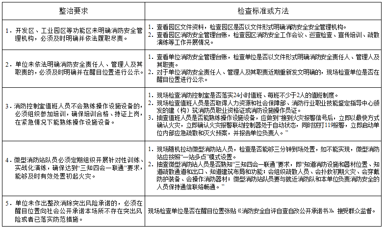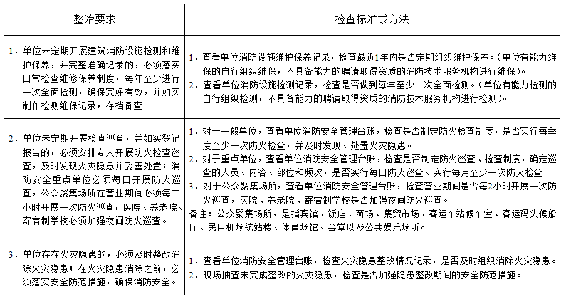 备注:单位在开展消防安全风险自查排查时的方法、标准包括但不限于以上方法和标准。
