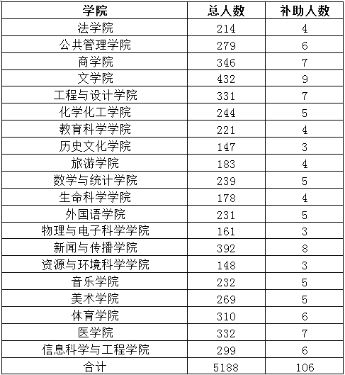 根据各学院人数(参考资格审查数据)2%,确定各学院获得求职补贴名额。